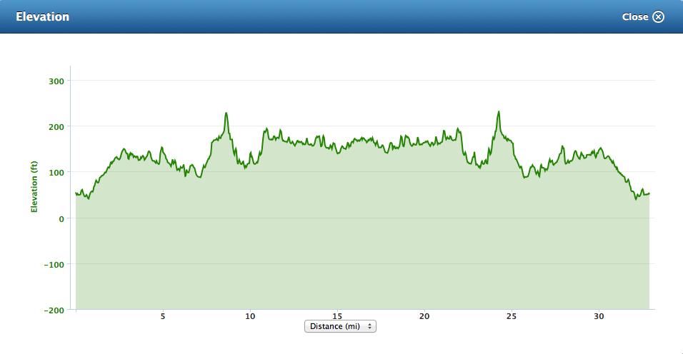 long as I could push it. I knew I’d be good for this till 23 or 24 miles. At 8 miles I was right on it and at 16 miles I was tracking just under it. However, I erred and didn’t factor in losing 90s at the halfway checkpoint where I had to refill my bottle and pockets with provisions for the return leg.