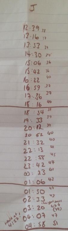 Here is Sarah’s cracking notes showing my lap times. I love the simplicity of these notes: